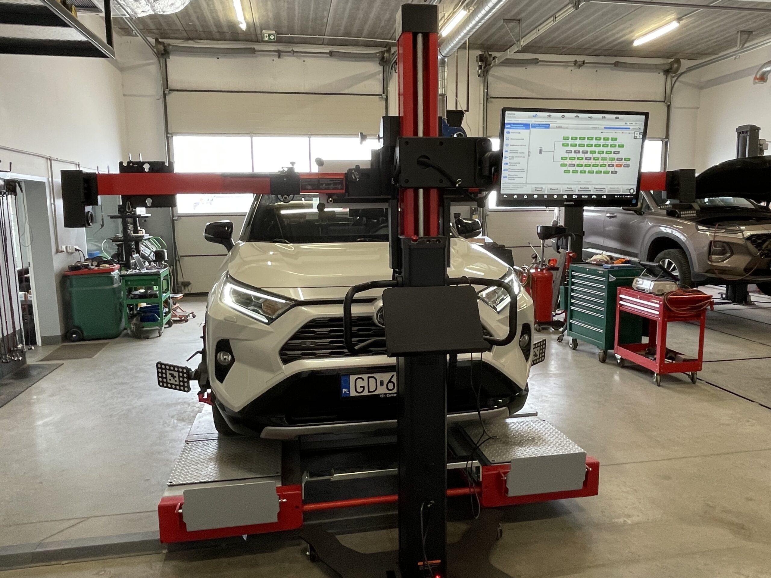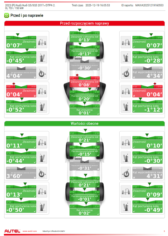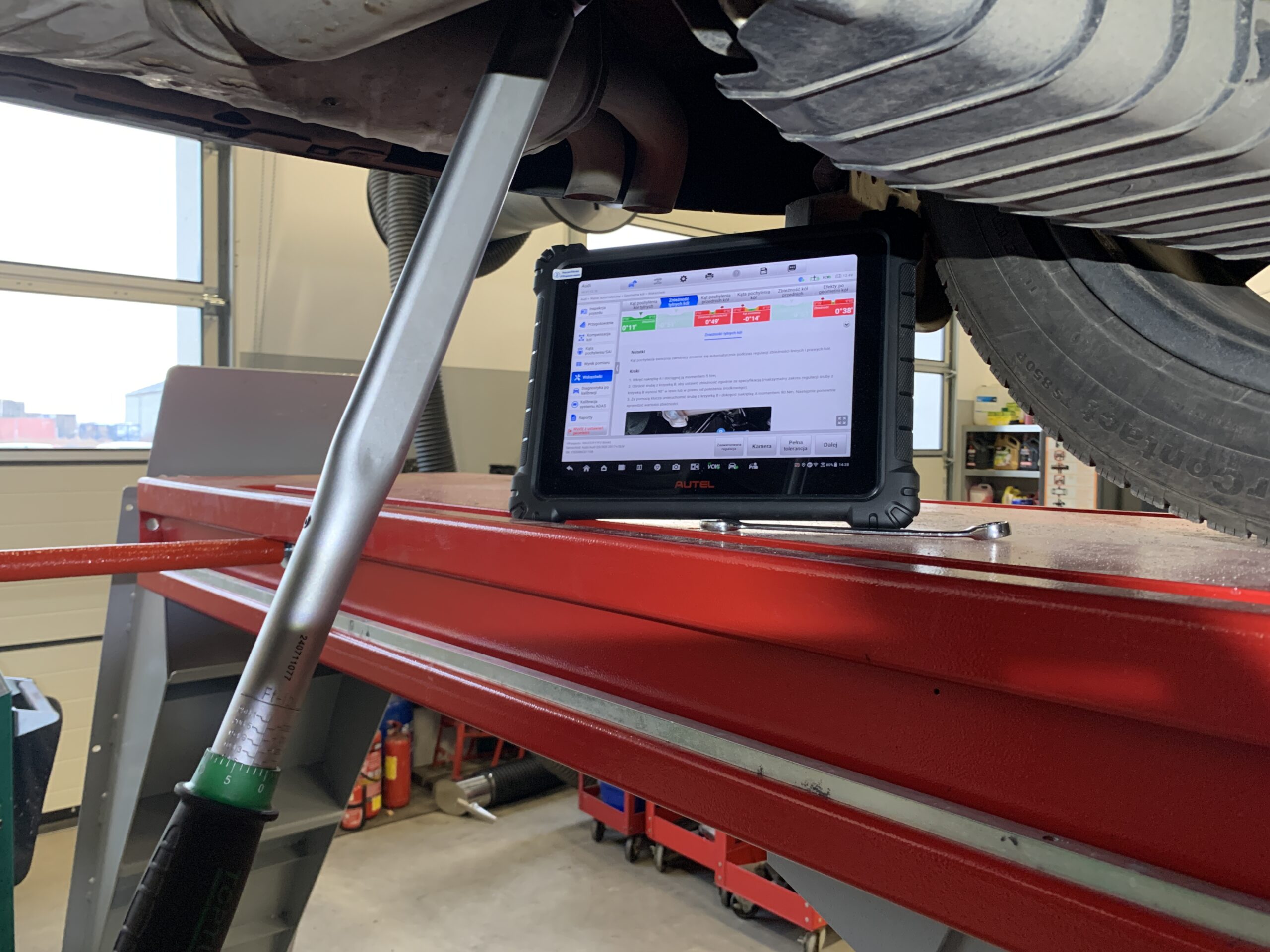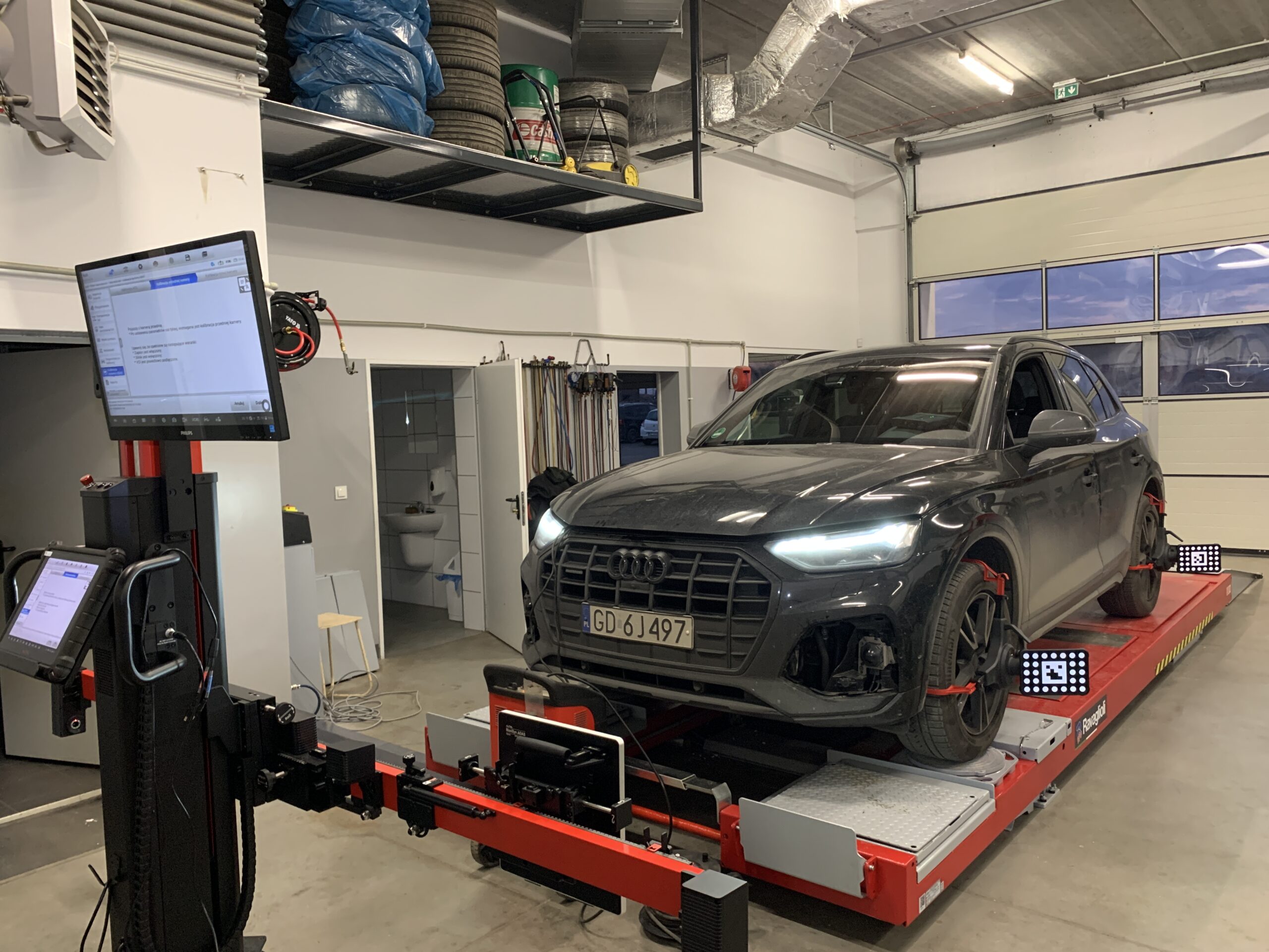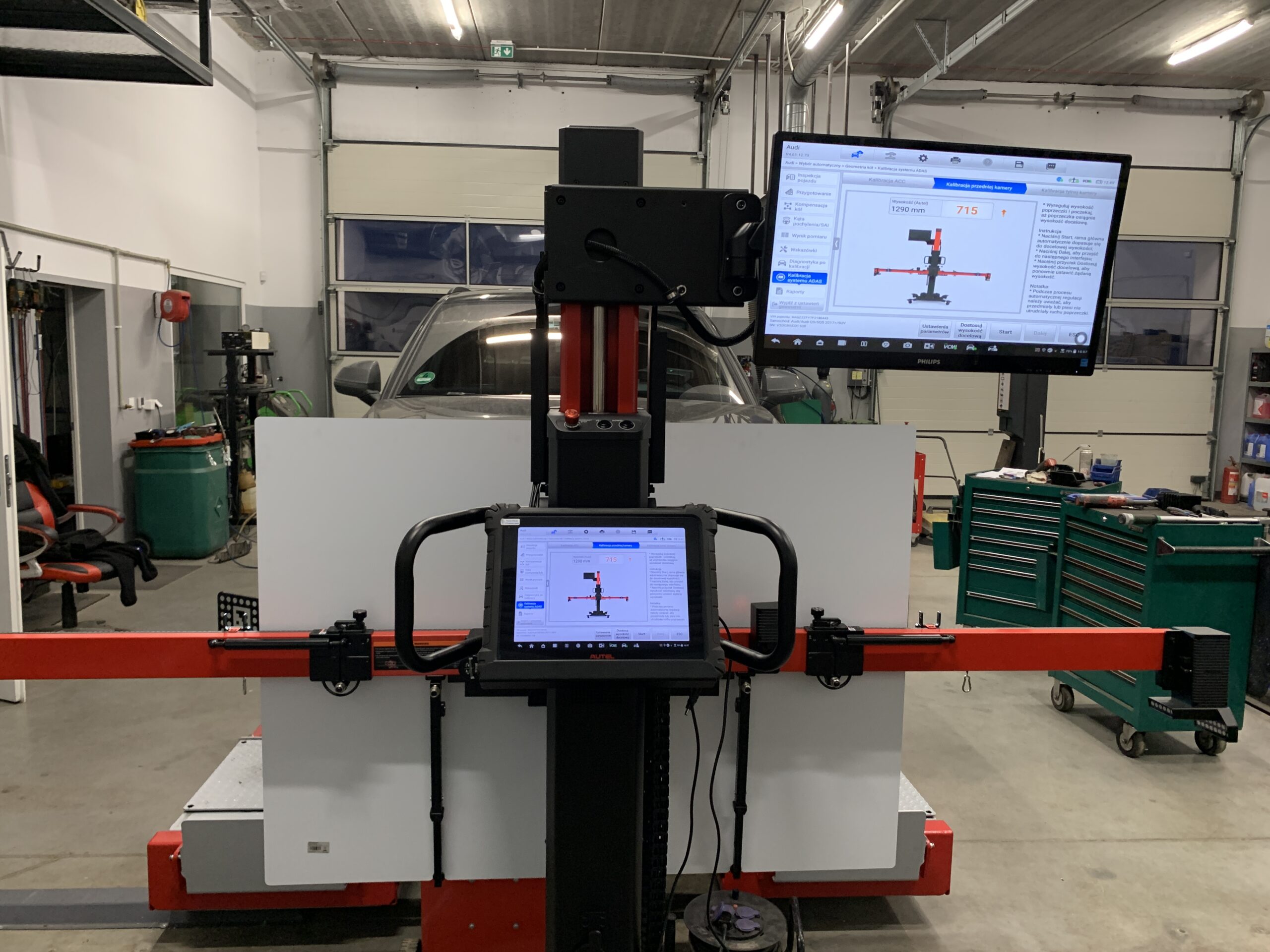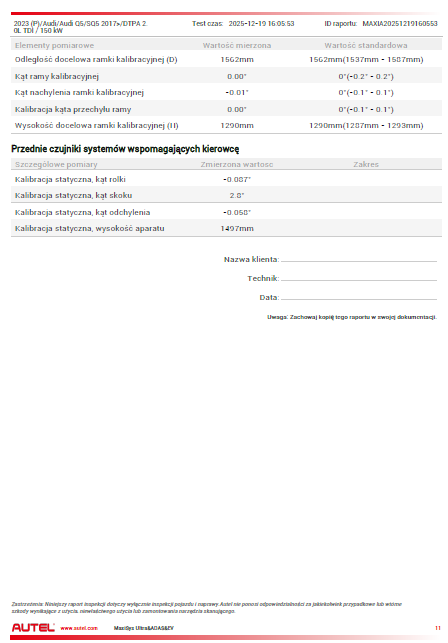- Przy geometrii zawieszenia, kalibracji kamer lub radarów niezbędne jest zatankowanie samochodu do pełna i opróżnienie wnętrza z przedmiotów wpływających na masę pojazdu- zadbaj o to